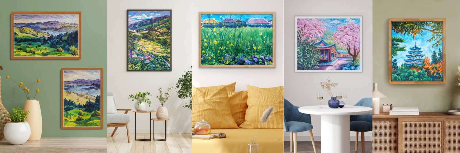 My Work:I have been actively building my body of work here in South Korea for the past 10 years. The spring before I came to Korea, I finished up my art degree with a study abroad landscape painting class in Tuscany, Italy. It was then that I fell in love with painting landscapes. I am inspired here daily by the mountains, skies, architecture, and how they all interact with each other. When I first started painting here, I focused on composition and color. With each painting I wanted to convey a mood or feeling about a place through the colors I used on the canvas. As I have painted over the years, I can see my style changing ever so slightly. Previously I would spend hours upon hours painstakingly trying to get everything perfect - every line straight, every door frame even. Now however, my style has loosened up and has taken on more of an impressionistic turn. Whether through plein air sessions, or sketching the scenery on roadtrips, I have begun to let not only the colors of the painting, but also the composition, the brushstrokes, and even the thickness or thinness of how the paint is applied also take part in telling the story on my canvas.